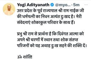 पूर्व राज्यपाल श्री राम नाईक की धर्मपत्नी का निधन