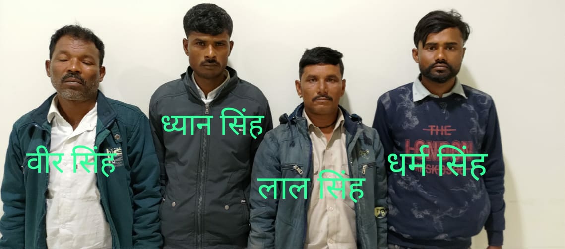 वरिष्ठ पुलिस अधीक्षक, एस0टी0एफ0 विशाल विक्रम सिंह ने बताया कि इस मामले में धर्म सिंह पुत्र विजेन्द्र सिंह निवासी गोपीवाला, जाटव वाला मजरा कालोनी, थाना ठाकुरद्वारा, जनपद मुरादाबाद, ध्यान सिंह पुत्र अतर सिंह निवासी बाखरपुर अटायन, थाना भोजपुर, जनपद मुरादाबाद, लाल सिंह उर्फ गुलाब सिंह पुत्र प्रताप सिंह निवसी ताजपुर, थाना निकासा, जनपद सम्भल, बीर सिंह पुत्र बिलासा सिंह निवासी गोपीवाला, जाटव वाला मजरा कालोनी, थाना ठाकुरद्वारा, जनपद मुरादाबाद को पुराना पारा पुलिस चैकी के सामने से गिरफ्तार किया गया है। इनके पास से 04 मोबाइल फोन, एक कैश बुक, 02 कूटरचित फर्जी प्रमाण पत्र, 01 पैन कार्ड, 01 अदद डीएल, 02 अदद आधार कार्ड, 02 रंगीन छायाप्रति कूट रचित फर्जी प्रमाण पत्र (अमर जीवन आयुर्वेदिक एण्ड कम्पनी सहारनपुर), 03 स्टील के डिब्बों में कथित आयुर्वेदिक दवा, 02 प्लास्टिक के पारदर्शी डिब्बों के अन्दर 22 छोटी डिब्बियों में कथित आयुर्वेदिक दवा, 01 स्टील के टिफिन में एक अदद पारा मापक यंत्र, 01 तराजू पीली धातु व 2640 रूपये नकद बरामद किया गया। इस सम्बंध में अभियुक्तों के खिलाफ जालसाजी, नकली दस्तावेज एवं फर्जीवाड़ा करने का मुकदमा पारा थाने में दर्ज किया गया है।