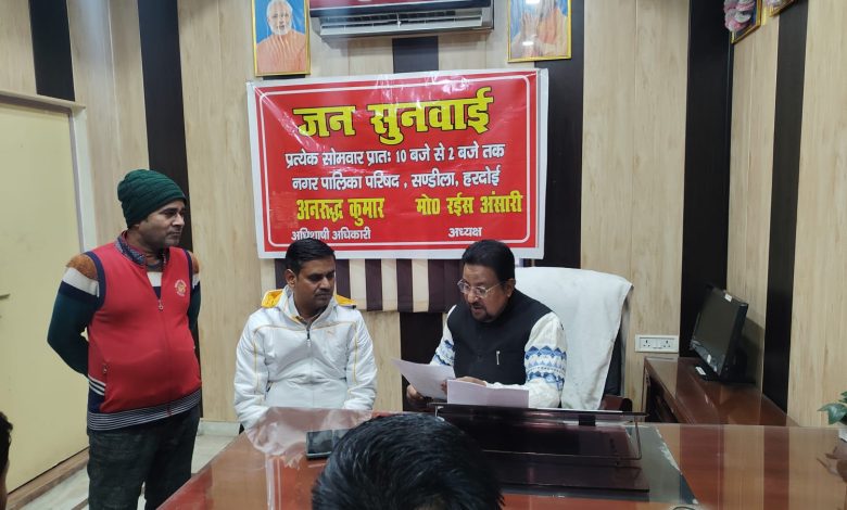 संडीला (हरदोई): नगर पालिका परिषद कार्यालय में जनसमस्याओं के त्वरित निस्तारण हेतु चेयरमैन मो0 रईस अंसारी की अध्यक्षता में जनसुनवाई का आयोजन किया गया। इस दौरान चेयरमैन ने स्पष्ट किया कि जनहित के कार्यों में लापरवाही बर्दाश्त नहीं की जाएगी।