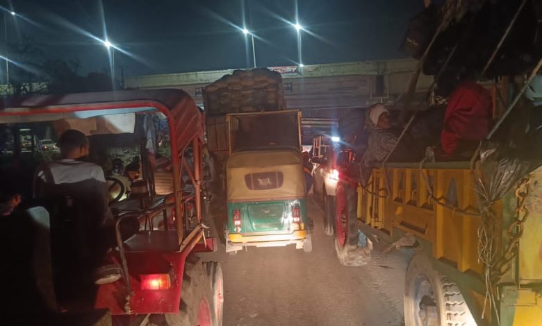 किसान पथ आउटर के नीचे भीषण जाम